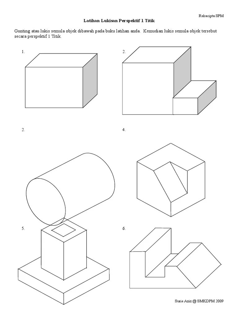 Lukisan Perspektif / Lukisan Perspektif / Perubahan saiz, jarak dan warna objek alam akan berlaku apabila objek tersebut dilihat pada .. Gambar perspektif adalah teknik menggambar yang digunakan untuk mengilustrasikan dimensi lewat bidang datar. Lukisan perspektif boleh dilukis menggunakan 3 teknik lukisan yang dapat dikenalpasti melalui bilangan titik lenyap yang digunakan. Mengenai gambar perspektif yang bisa anda gunakan sebagai lukisan gambar . Text of contoh lukisan perspektif. Rajah di atas merupakan langkah dalam melakar lakaran perspektif satu titik.